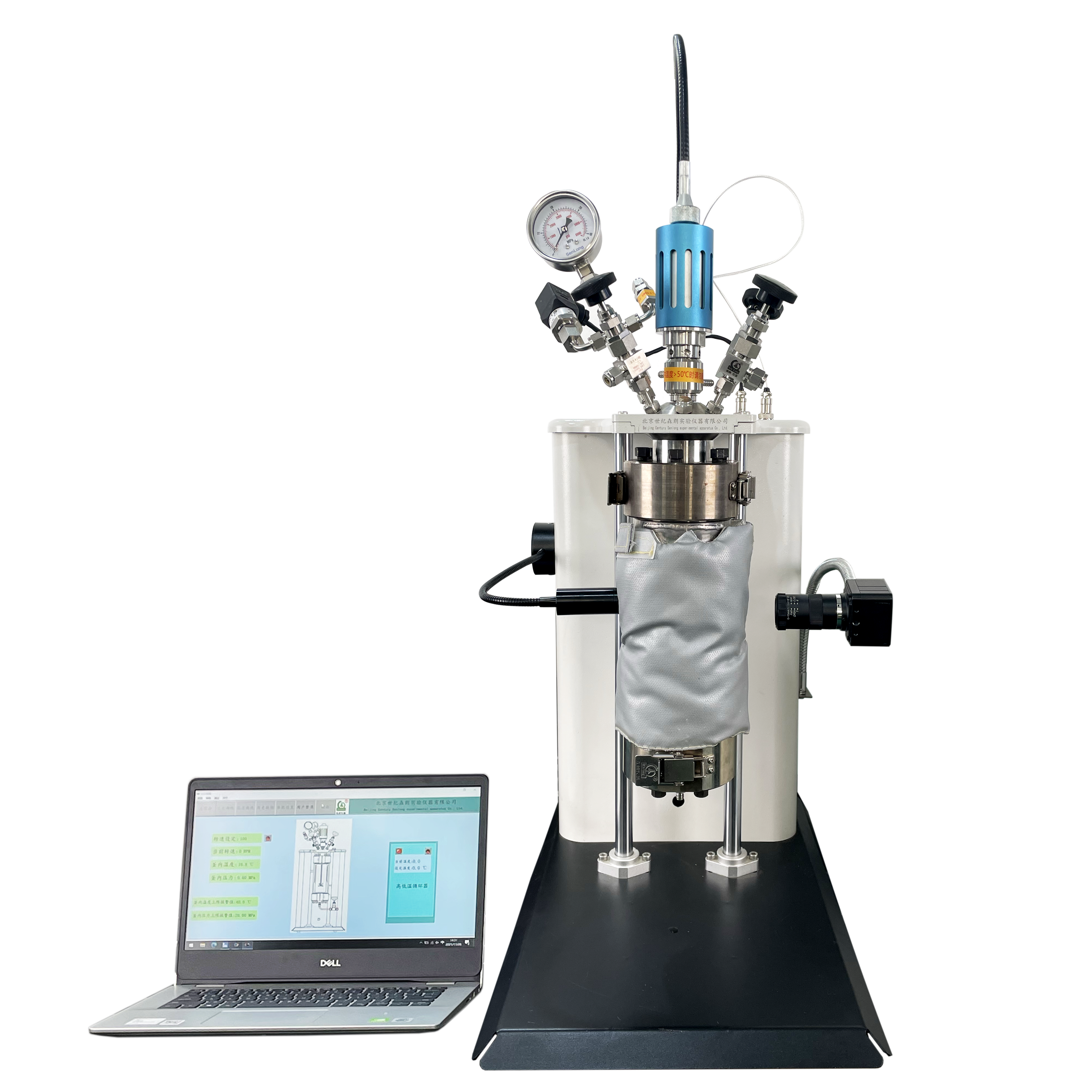 (4)攪拌方式:頂入式軟驅動磁耦機械攪拌(速度可調)攪拌平勻快速;
